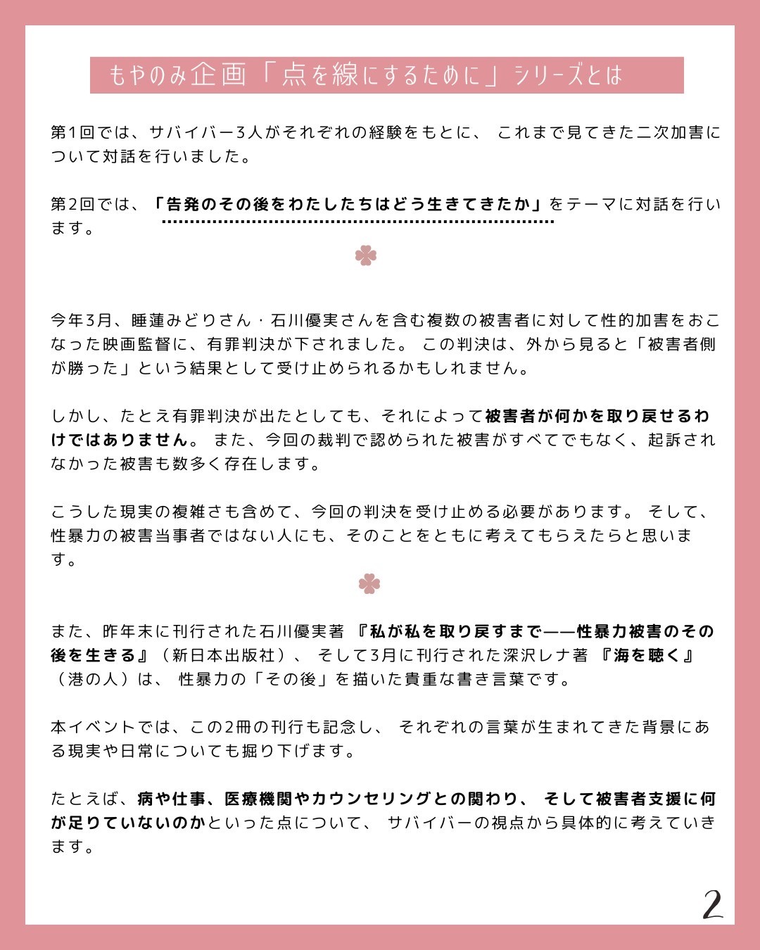 【点を線にするためにVol.2『告発のその後をわたしたちはどういきてきたか』】
